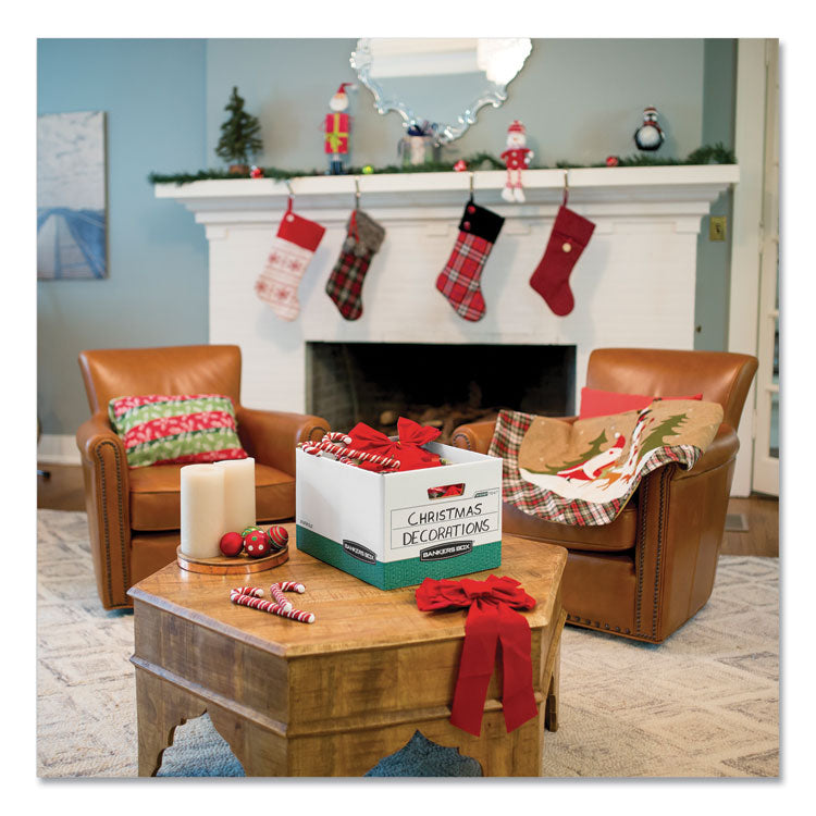 R-Kive Heavy-Duty Storage Boxes, Letter/legal Files, 12.75" X 16.5" X 10.38", White/green, 12/carton