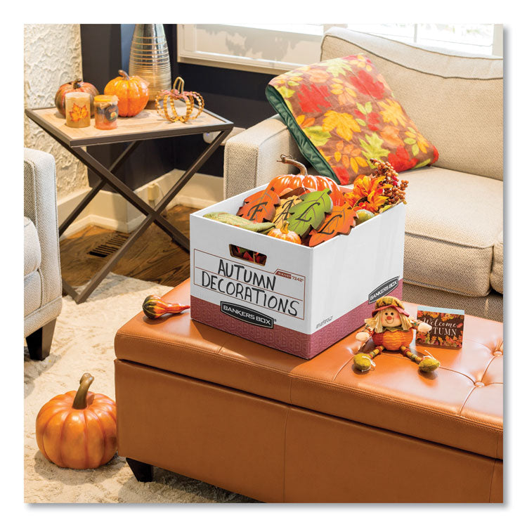 R-Kive Heavy-Duty Storage Boxes, Letter/legal Files, 12.75" X 16.5" X 10.38", White/red, 12/carton
