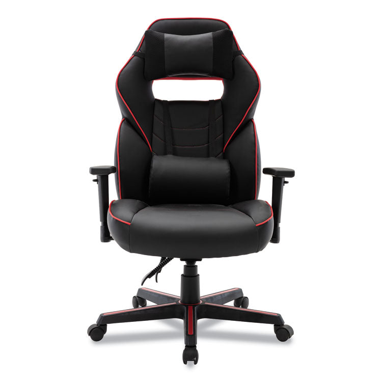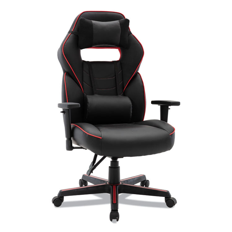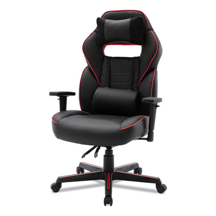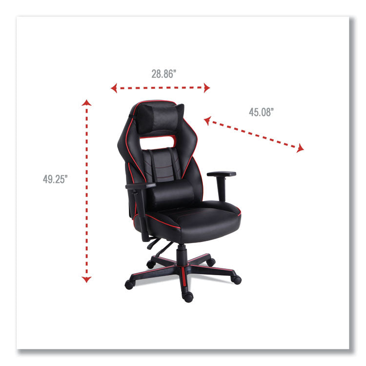 Whether you're getting your game on, knocking out some homework, or leading a team from your home office you'll be doing so in style and comfort with this Alera Gaming Chair. Inspired by top racing car seats, this chair delivers ultra-comfort and sleek styling. The 135 degree reclining seat allows you to lie back and take a break from the action. Dial in your perfect comfort level with such features as height adjust, tilt tension, tilt lock, adjustable arms and removable head and lumbar pillows. Score a quick win with the easy to assemble Alera Gaming Chair. Recommended Application Area(s): General Office & Task; Seat Color: Black/Red Trim; Back Color: Black/Red Trim; Color Family: Black.