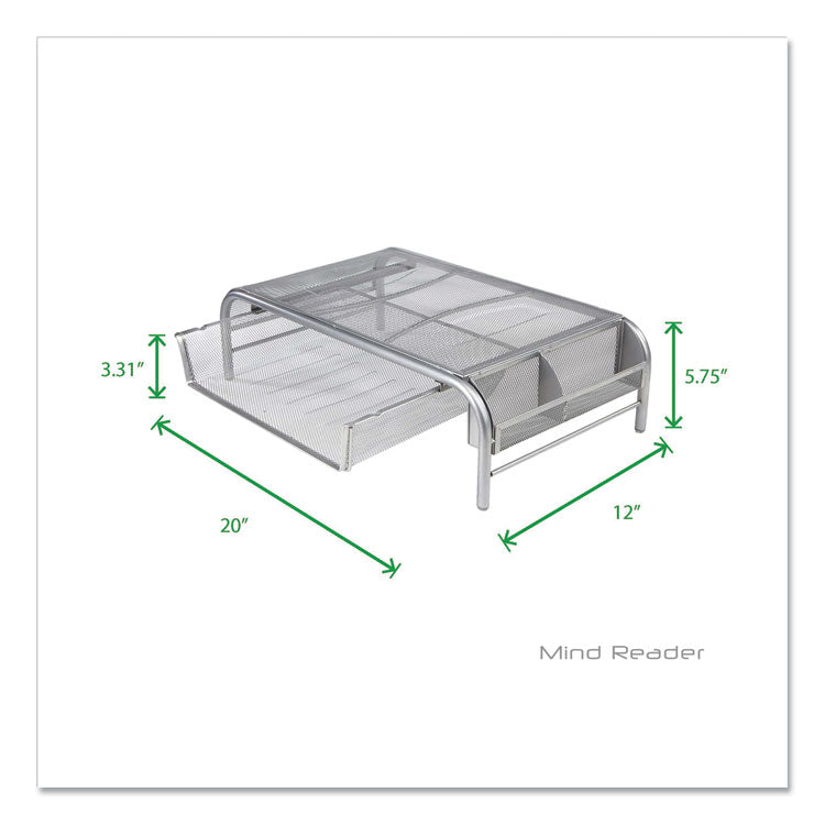 Raise Metal Mesh Monitor Stand With Drawer, 20" X 12" X 5.75", Silver, Supports 25 Lbs
