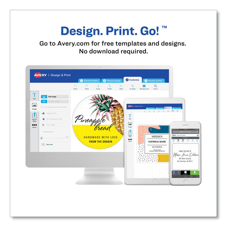 Add a special look and feel to envelopes, gifts, mailings and other items with these versatile labels. Labels are ideal for premium-looking branding and promotional labels. Perfect for event invitations and marketing materials. Permanent labels are guaranteed to stick and stay. Easy to customize with free designs and templates from Avery® Design & Print. Perfect for adding a unique touch to almost anything. Pearl Ivory—Print-to-the-Edge and add color to the entire label. Shape: Rectangular; Label Size - text: 3 x 3.75; Label Color(s): Pearl Ivory; Color Family: Beige.