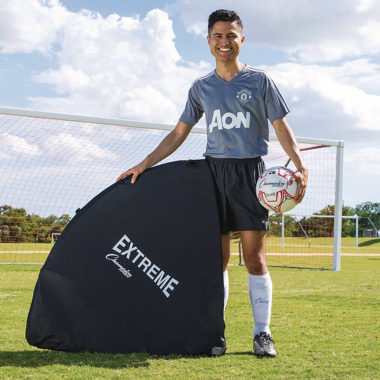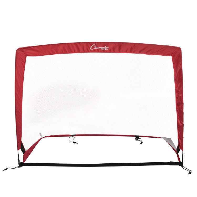 Ideal for practices, training, and gym classes, the Champion Sports Rectangular Pop-Up Goal features a collapsible, lightweight frame for easy set-up, transportation, and storage. The pop-up design makes setting up the soccer goal easy for anyone, while the ground stakes allow players to easily secure the net to the ground, ensuring it is sturdy throughout gameplay. Additionally, the lightweight frame and mesh netting is durable enough to withstand regular use, ensuring this soccer net can be used in various outdoor environments. Length: 48"; Width: 37"; Diameter: 0.27"; Material(s): Fiberglass Frame.
