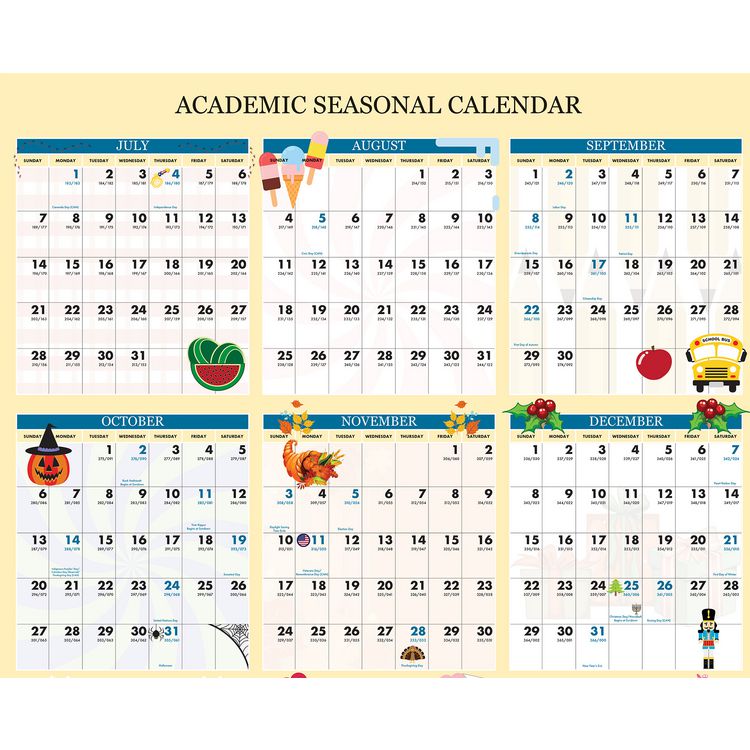 Recycled Academic Seasonal Laminated Wall Calendar, Illustrated Seasons, 24 x 37, 12-Month (July to June), 2024 to 2025