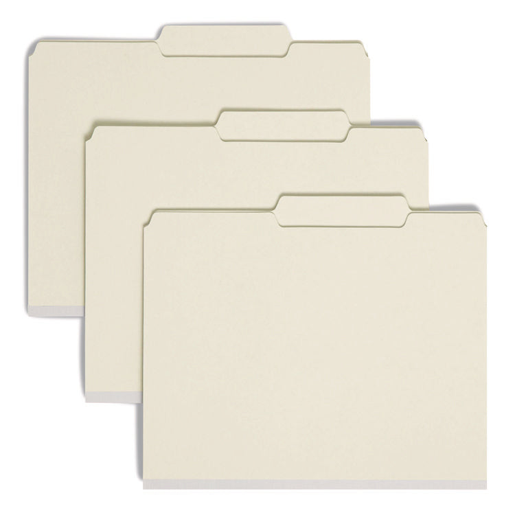 Recycled Pressboard Folders, Two SafeSHIELD Coated Fasteners, 2/5-Cut: R of C, 1" Expansion, Letter Size, Gray-Green, 25/Box