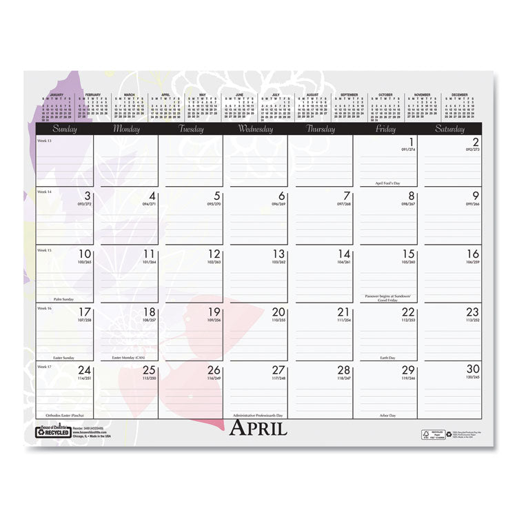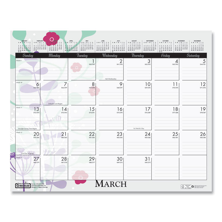 Recycled Wild Flower Wall Calendar, Wild Flowers Artwork, 15 x 12, White/Multicolor Sheets, 12-Month (Jan to Dec): 2025