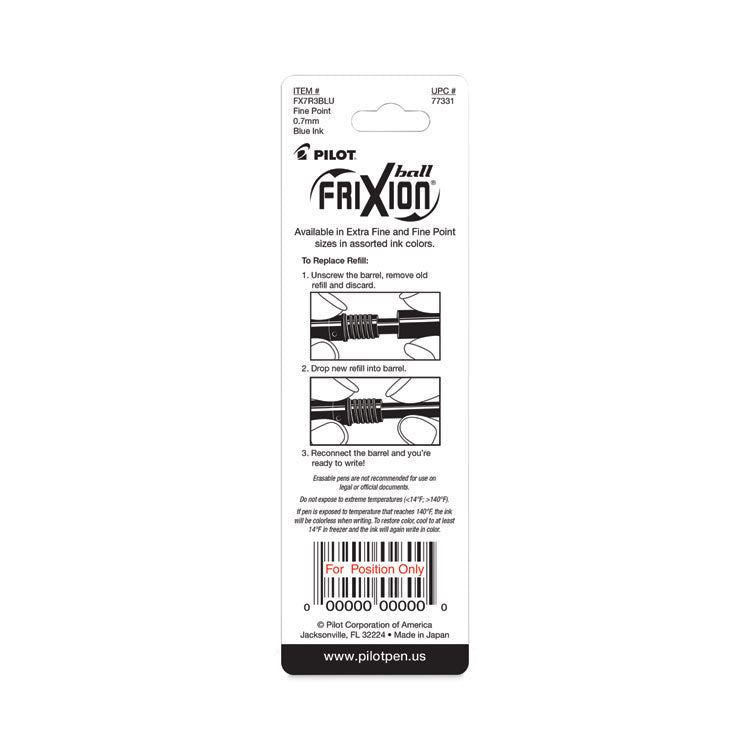 Refill For Pilot Frixion Erasable, Frixion Ball, Frixion Clicker And Frixion Lx Gel Ink Pens, Fine Tip, Blue Ink, 3/pack