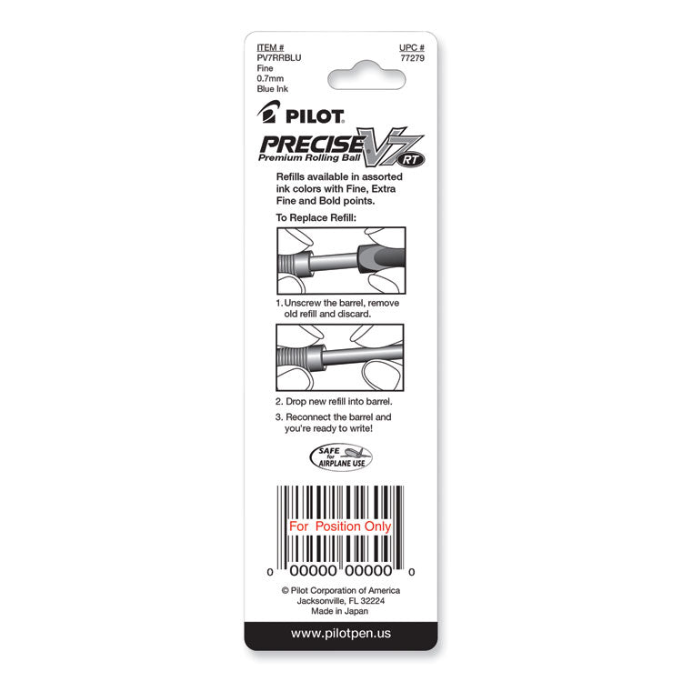 Refill For Pilot Precise V7 Rt Rolling Ball, Fine Conical Tip, Blue Ink, 2/pack