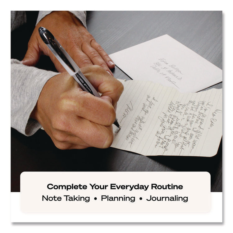 Give your writing a boldy infused flavor with Vision Elite BLX Rollerball Pens from uni-ball featuring a bend-resistant stainless steel bold tip and tungsten carbide rollerball. Capped roller pens deliver smooth, intense lines with unparalleled definition - useful for note taking, list making, signing checks and legal documents, and even uniquely embellishing creative writing projects. Innovative uni Super Ink technology effectively entraps the gel ink into the paper, producing fraud, fade and water-resistant documents that resist check washing or bleaching. These Vision Elite pens have a special design that withstands cabin pressure variances without leaking, making them useful for travelers. Exclusive Uni-Flow Ink System ensures a consistent, delightfully fluid writing experience, and a translucent window ensures that you don't run out of ink unexpectedly. These sleek and modern roller pens come in an assortment of black ink infused colors, adding an element of drama to your everyday tasks and creative writing projects - no matter the altitude. Refill Format: Standard Ceramic Rollerball; Refill For Series: uni-ball® Vision Elite™ Roller Ball Pens; Refill Ink Color: Black; Color Family: Black.