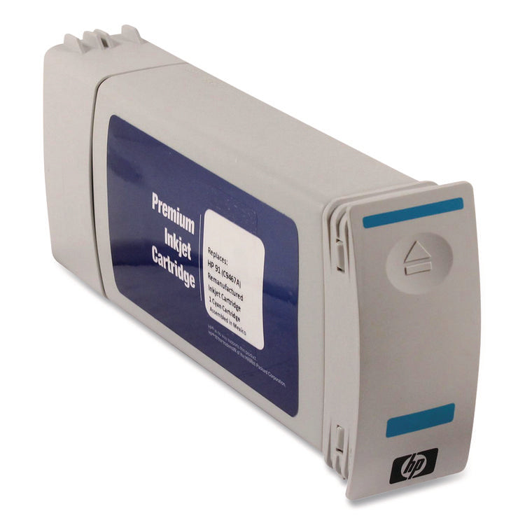 Remanufactured Cyan High-Yield Ink, Replacement for 91 (C4913A), 69 mL