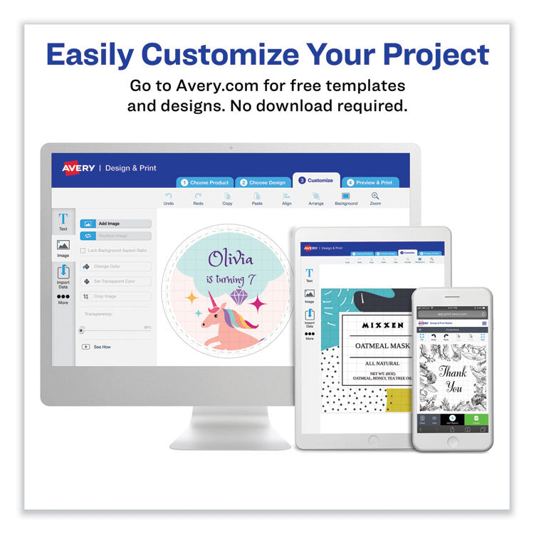 Need a versatile label that sticks around only as long as you want it to? Look no further than these print or write removable labels. Their standard or round size makes them ideal for labeling objects for sale, identifying the contents of containers, marking drawers and shelves and more. With free templates from Avery® Design & Print, it's easy to customize the labels and print. Removable adhesive makes the label stay put where you placed it but lets you peel it away easily when the label is no longer needed. With these labels, your labeling needs are met and you control the duration. Identify the contents of containers and label items for sale more quickly and conveniently. Round Labels on 8.5 x 11 Sheets with Sure Feed® Technology—Designed for a reliable printer feed. Shape: Round; Label Size - text: 1" dia; Label Color(s): White; Color Family: White.