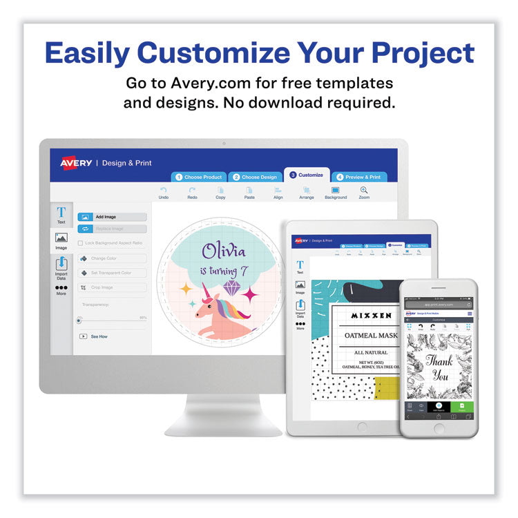 Need a versatile label that sticks around only as long as you want it to? Look no further than these print or write removable labels. Their standard or round size makes them ideal for labeling objects for sale, identifying the contents of containers, marking drawers and shelves and more. With free templates from Avery® Design & Print, it's easy to customize the labels and print. Removable adhesive makes the label stay put where you placed it but lets you peel it away easily when the label is no longer needed. With these labels, your labeling needs are met and you control the duration. Identify the contents of containers and label items for sale more quickly and conveniently. Rectangular Labels on 8.5 x 11 Sheets with Sure Feed® TechnologyDesigned for a reliable printer feed. Shape: Rectangular; Label Size - text: 1 x 2.63; Label Color(s): White; Color Family: White.