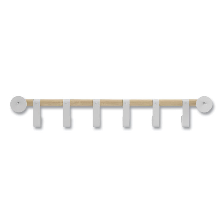 Resi Coat Wall Rack, 6 Hook, 36.25w x 4.25d x 6h, White