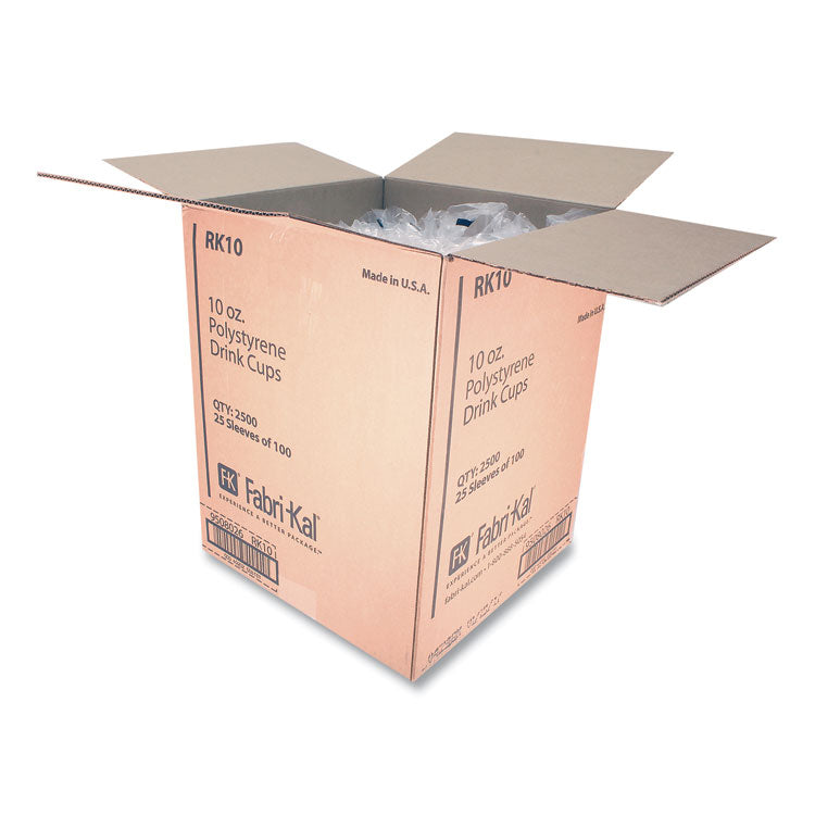Lightweight plastic cups feature attractive, strength-enhancing sidewall ribbing. Embossed capacity marks enable quick, accurate and consistent fountain filling. Printable surface provides opportunities for custom branding and fill identification. High-quality polystyrene construction eliminates the potential for flavor and odor transfer. Smooth-rolled rims accommodate lid-free sipping. Leak-resistant, snap-tight lids (sold separately, unless otherwise noted). Horizontal Sidewall Ribbing. Cup Type: Cold Cup; Interior Volume Capacity: 10 oz; Material(s): Polystyrene (PS); Material Type: Plastic.