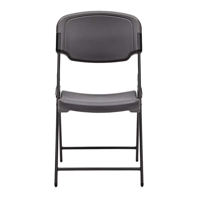 Rough n Ready Commercial Folding Chair, Supports Up to 350 lb, 15.25" Seat Height, Charcoal Seat, Charcoal Back, Silver Base