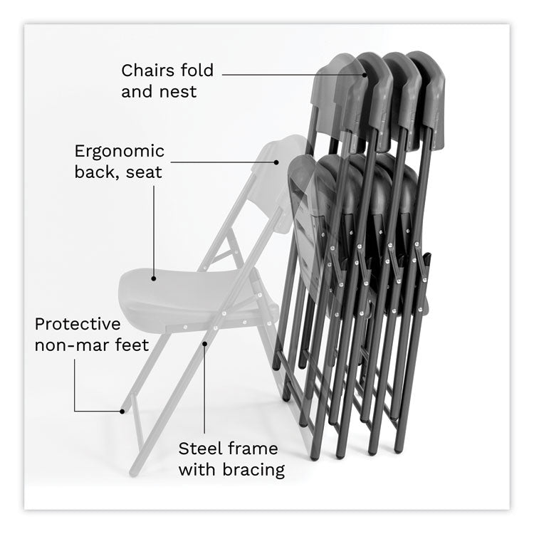 Rough n Ready Commercial Folding Chair, Supports Up to 350 lb, 18" Seat Height, Charcoal Seat/Back, Charcoal Base, 4/Pack