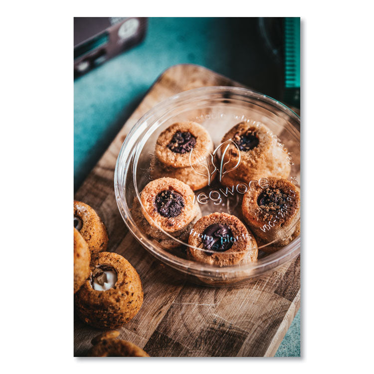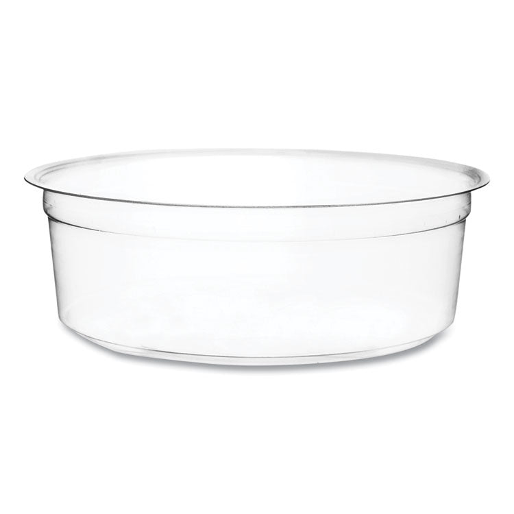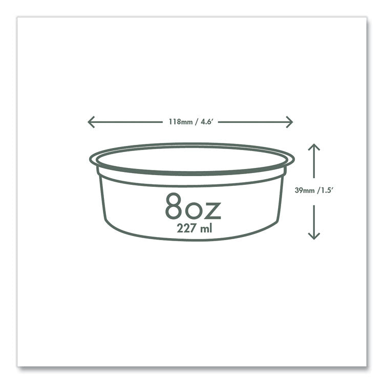 Round Deli Pots, Compostable, 8 oz, 4.6" Diameter x 1.5" h, Clear, Plastic, 500/Carton