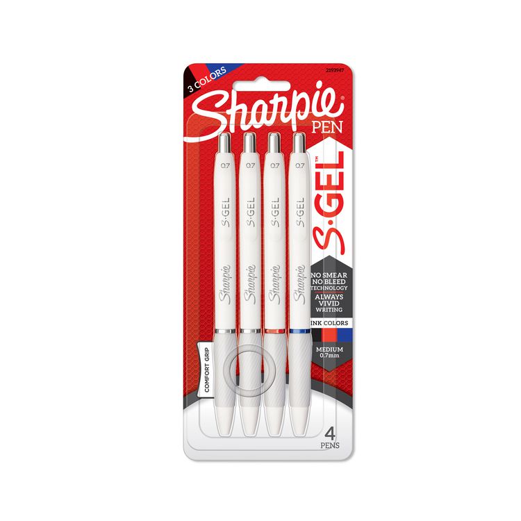 S-Gel Fashion Barrel Gel Pen, Retractable, Medium 0.7 mm, Assorted Ink Colors, White Barrel, 4/Pack