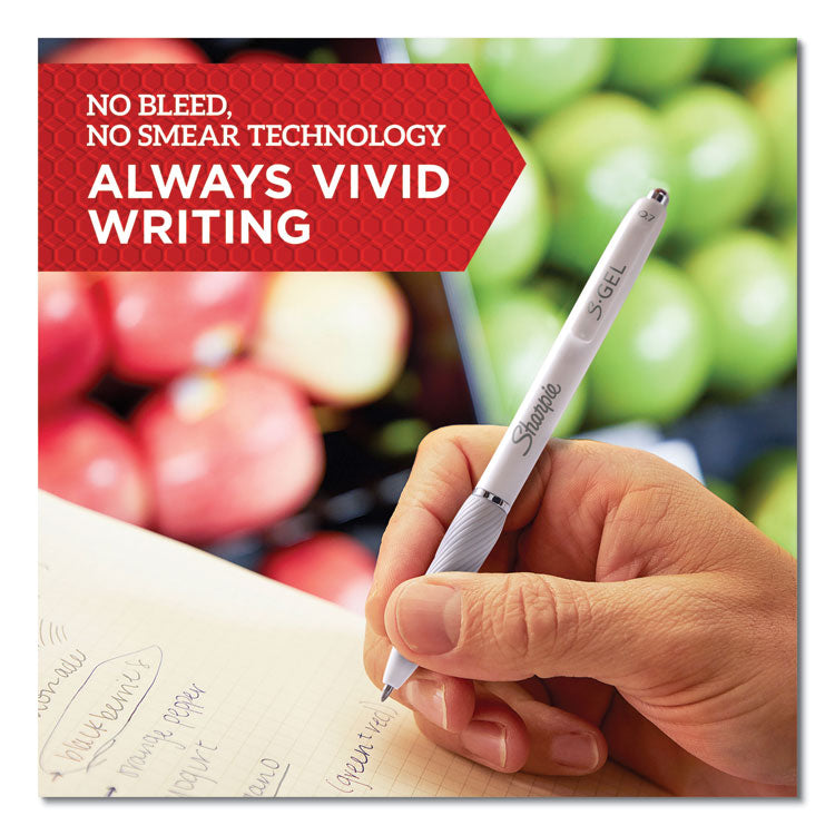The power of Sharpie is now in a gel pen with the Sharpie S-Gel. With no-smear, no-bleed technology and bold, best-in-class ink, this Sharpie pen delivers always-vivid writing. It's a high-performance gel pen with a sleek, professional look that makes it a writing instrument you won't want to loan out. The contoured rubber grip makes for comfortable writing during any task. Sharpie S-Gel offers a smooth writing experience perfect for homes, schools or offices. Pen Sub-Brand & Product Family: S-Gel™ Fashion Barrel; Pen Type: Gel Pen; Pen Style: Retractable; Pen Tip Type: Conical.