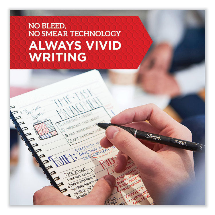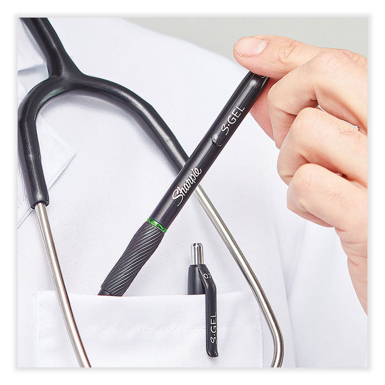 The power of Sharpie is now in a gel pen with the Sharpie S-Gel. With no smear, no bleed technology and bold, best-in-class ink, this Sharpie pen delivers always-vivid writing. It's a high-performance gel pen with a sleek, professional look that makes it a writing instrument you won't want to loan out. And the contoured rubber grip makes for comfortable writing during any task. Available in multiple point sizes, barrel finishes and gel ink colors, Sharpie S-Gel offers a smooth writing experience perfect for homes, schools, or offices. Pen Sub-Brand & Product Family: S-Gel™ High-Performance; Pen Type: Gel Pen; Pen Style: Retractable; Pen Tip Type: Conical.