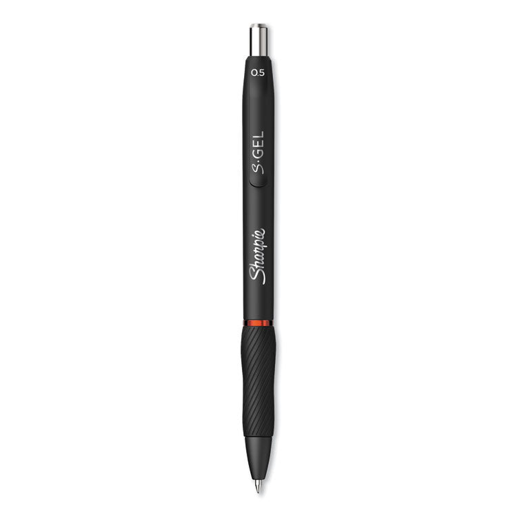 S-Gel High-Performance Gel Pen, Retractable, Fine 0.5 Mm, Red Ink, Black Barrel, Dozen