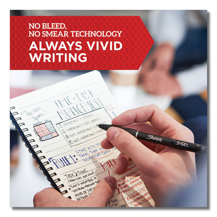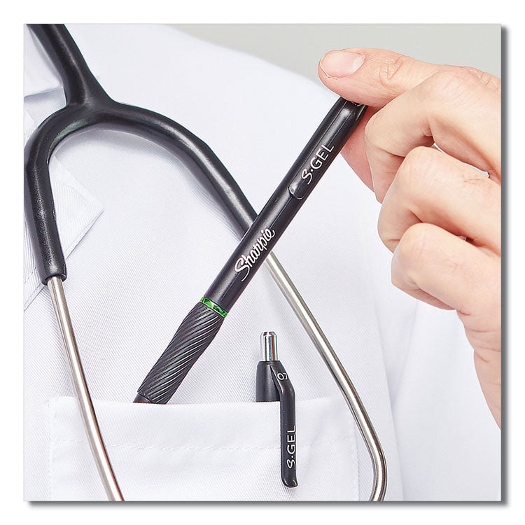 The power of Sharpie is now in a gel pen with the Sharpie S-Gel. With no smear, no bleed technology and bold, best-in-class ink, this Sharpie pen delivers always-vivid writing. It's a high-performance gel pen with a sleek, professional look that makes it a writing instrument you won't want to loan out. And the contoured rubber grip makes for comfortable writing during any task. Available in multiple point sizes, barrel finishes and gel ink colors, Sharpie S-Gel offers a smooth writing experience perfect for homes, schools, or offices. Pen Sub-Brand & Product Family: S-Gel™ High-Performance; Pen Type: Gel Pen; Pen Style: Retractable; Pen Tip Type: Conical.
