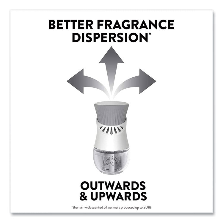 Leave a lasting impression on guests and ensure a consistent experience with Air Wick Scented Oil Refills with Essential Oils. Keep supply rooms stocked with the pleasant scents your guests come to associate with your business. Get up to 60 days per refill, on the lowest warmer setting, of natural-smelling fragrance with essential oil-infused formulas. Easily refill the Air Wick plug-in warmer by unscrewing the cap and inserting the refill until it clicks. Adjust the warmer settings to ensure the optimal fragrance for each room. Enhance entrances, common areas, offices, breakrooms and guest rooms with pleasant scents. Scent: Hawai'i Exotic Papaya and Hibiscus Flower; Physical Form: Liquid; Application: Automatic Odor Control; Volume Capacity: 0.67 oz.