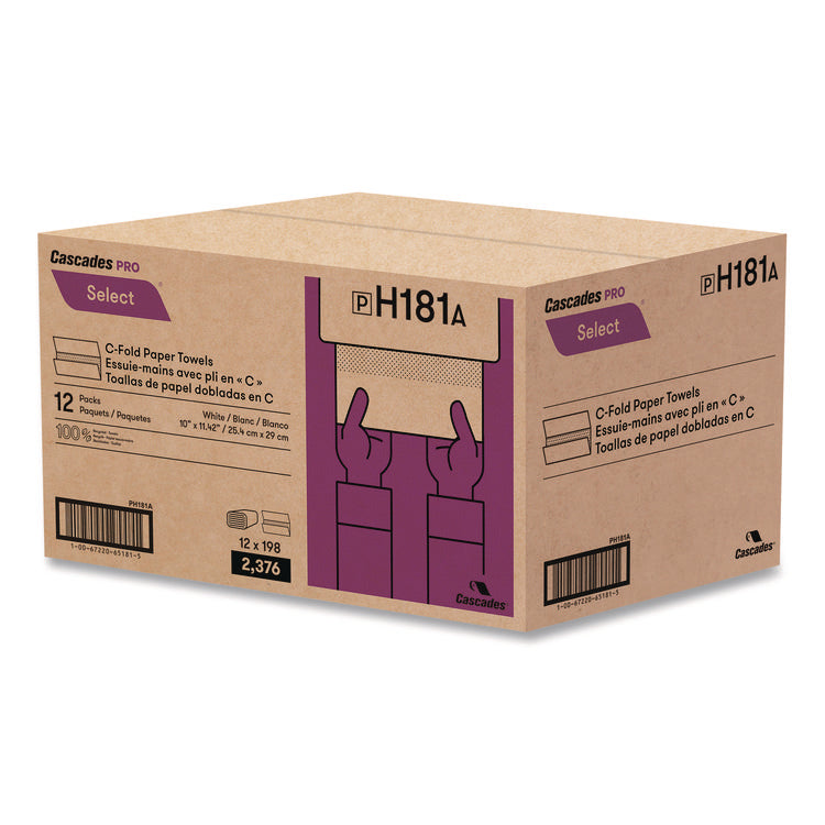 Select Folded Paper Towels, C-Fold Towels, 1-Ply, 3.75 x 10, White, 198 Towels/Pack, 12 Packs/Carton