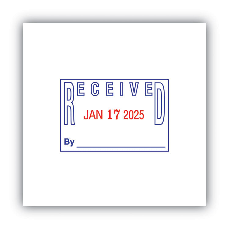 The self-inking action of this heavy-duty line dater makes tracking paperwork easy. Simply press and print the abbreviated month, date and year. Band shield protects fingers, keeping them clean and ink-free. Steel-reinforced frame ensures long-lasting durability. Features water-based ink and a five-year date band. Stamp Type: Message Dater; Message(s): RECEIVED; Ink Types: Self-Inking; Impression Width: 1.25".