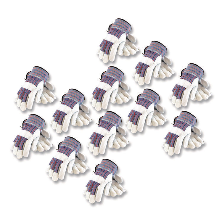 Shoulder Split Cowhide Leather Palm Gloves, B/c Grade, Medium, Blue/gray, 12 Pairs