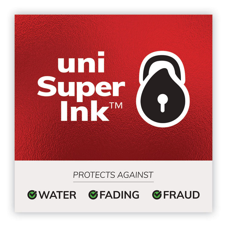Stock your office, home or classroom with Gel Grip Stick Pens from uni-ball featuring a 0.7mm medium point with a stainless steel tip that resists bending and breaking. Pigmented gel ink technology offers an exceptionally smooth, even flowing writing experience. Use these gel stick pens for everyday writing tasks, list making, note taking and check signing. Innovative uni Super Ink technology effectively entraps the gel ink into the paper, producing fraud, fade and water-resistant documents. The 0.7mm medium point produces bold and vibrant gel ink color every time. A dimpled grip offers exceptional comfort as you continue writing, while a translucent ink window indicates the level of gel ink remaining, so you don't run out unexpectedly. Improve your everyday writing experience with these stick gel pens that deliver a rich pigmented color. Pen Sub-Brand & Product Family: Signo GRIP™; Pen Type: Gel Pen; Pen Style: Stick; Pen Tip Type: Conical.