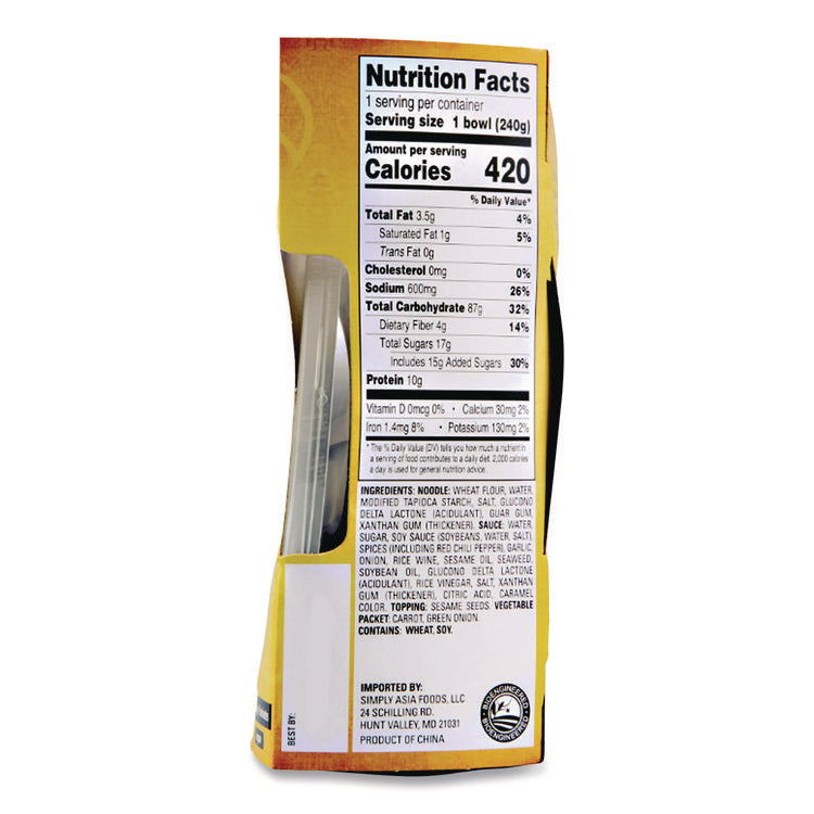 Simply Asia Sesame Teriyaki Noodle Bowl, 8.5 oz, 6/Carton