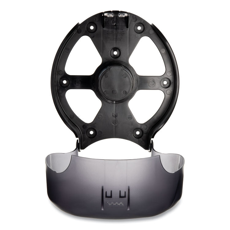 Single JBT dispensers provide efficient and reliable tissue dispensing. Built to meet San Jamar's high quality standards, durable single JBT dispensers work with any universal jumbo bath tissue, 9 or 12 inch. Single 9" JBT Oceans® Style—Oceans® wave design imprinted on the cover. For Roll Size: 9"; Roll Type: Jumbo; Dispenser Capacity (text): Holds One 9" Roll with 3.25" Core Diameter; Color(s): Transparent Black Pearl.