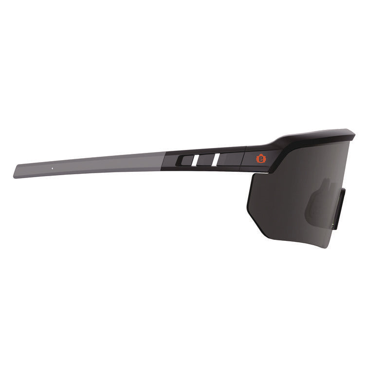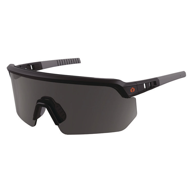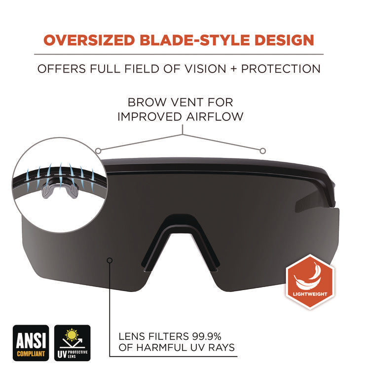 Skullerz AEGIR Anti-Scratch and Enhanced Anti-Fog Safety Glasses feature an oversized blade-style design to provide superior eye protection and maximized field of vision. These protective safety glasses feature tough scratch-resistant and anti-fog polycarbonate lenses to protect against impacts and filter 99.9 percent of harmful UVA, UVB and UVC rays. The high-strength frame is built for durability and the rubberized nose bridge and temples offer non-slip security and resist sweat for all-day comfort. To provide a custom fit, the rubber temples can be easily bent and re-bent to accommodate a variety of head shapes and fit preferences. Impact resistant. Safety Glasses Style: Wraparound; Frame Color: Matte Black; Frame Material: Nylon Impact; Lens Material: Polycarbonate.