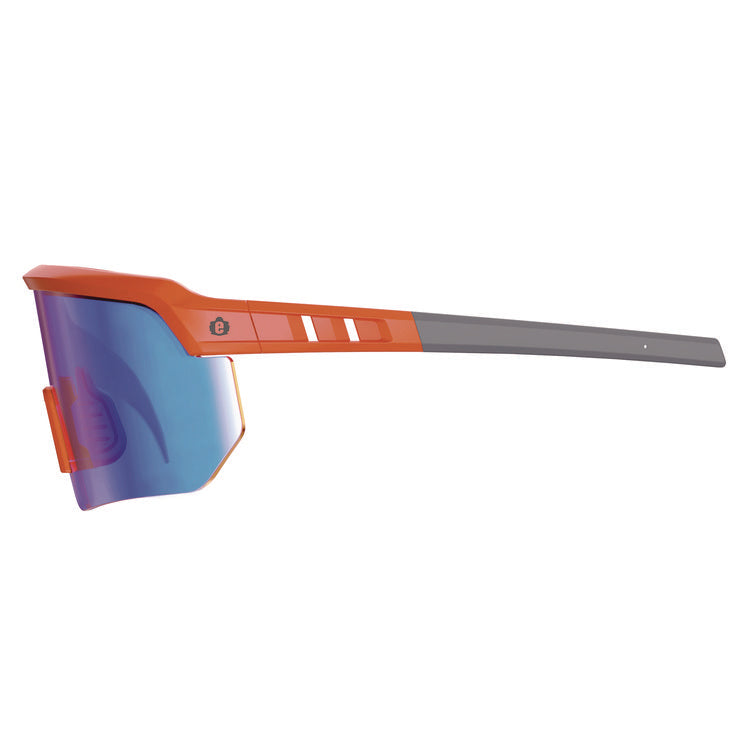 Skullerz AEGIR Safety Glasses, Mirrored Lenses, Orange Nylon Impact Frame, Blue Mirror Polycarbonate Lens