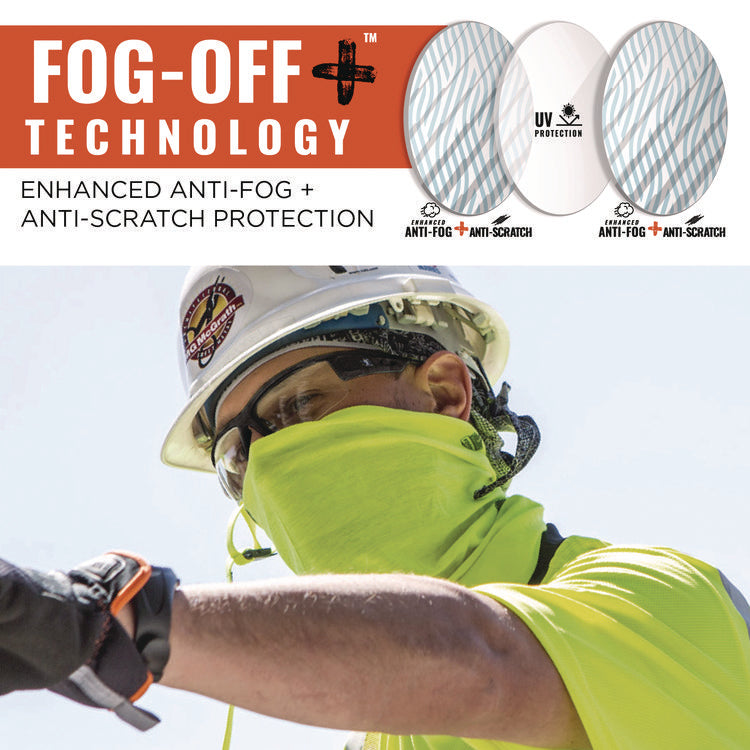 Skullerz DAGR Anti-Scratch & Enhanced Anti-Fog Safety Glasses are half-frame glasses with a blade-style design that offer a sleek and sporty look, perfect both on the job or off. These safety glasses feature tough anti-scratch and anti-fog polycarbonate lenses to protect against impacts and filter 99.9 percent of harmful UVA, UVB and UVC rays. Available in a variety of lenses to suit a range of tasks and light environments. The durable frames bend and flex without breaking. A non-slip rubber nose piece and rubber temples keep the glasses secure and resist sweat. Safety Glasses Style: Half-Frame Wrapround; Frame Color: Matte Black; Frame Material: Nylon Impact; Lens Material: Polycarbonate.