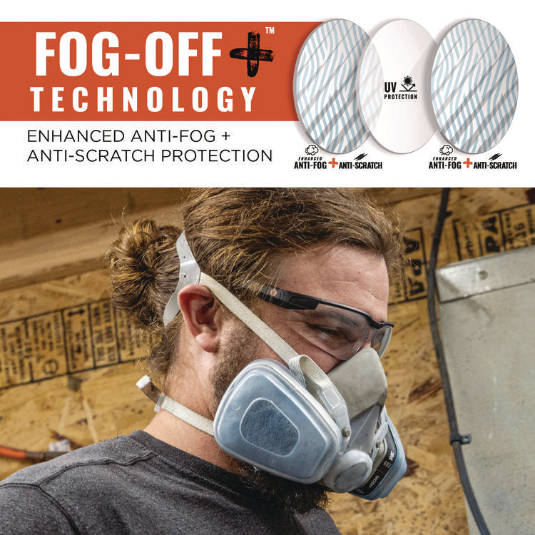 Skullerz DELLENGER Enhanced Anti-Fog & Scratch-Resistant Safety Glasses feature adjustable temples that shift up or down and lock into place for a custom fit on a variety of face sizes. These safety glasses feature tough anti-scratch and anti-fog polycarbonate lenses to protect against impacts and filter 99.9 percent of harmful UVA, UVB and UVC rays. The rimless design makes for a lightweight and comfortable fit and maximizes a full field of vision. A contoured nose bridge won't slip or pinch and the flex-fit temples reduce pressure and provide stay-put all-day comfort. The lens features Fog-Off+ technology for durable scratch-resistance and enhanced permanent anti-fog performance that won't wash or rub off for clear viewing no matter the job-particularly useful for those working with dust masks or in extreme temperature change. UV protection filters 99.9 percent of harmful UVA, UVB and UVC rays to keep eyes safe in the sun. Safety Glasses Style: Half-Frame Wraparound; Frame Color: Matte Black; Frame Material: Nylon Impact; Lens Material: Polycarbonate.