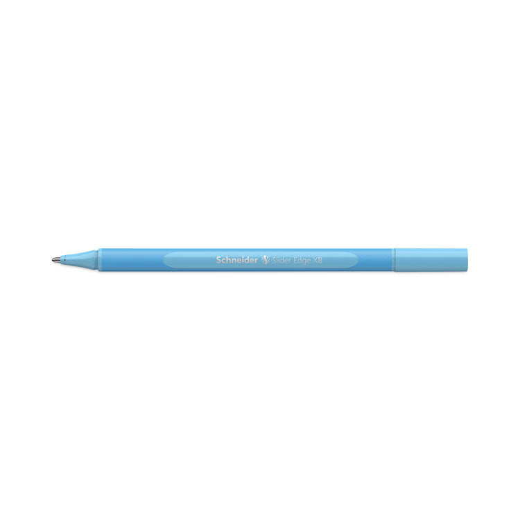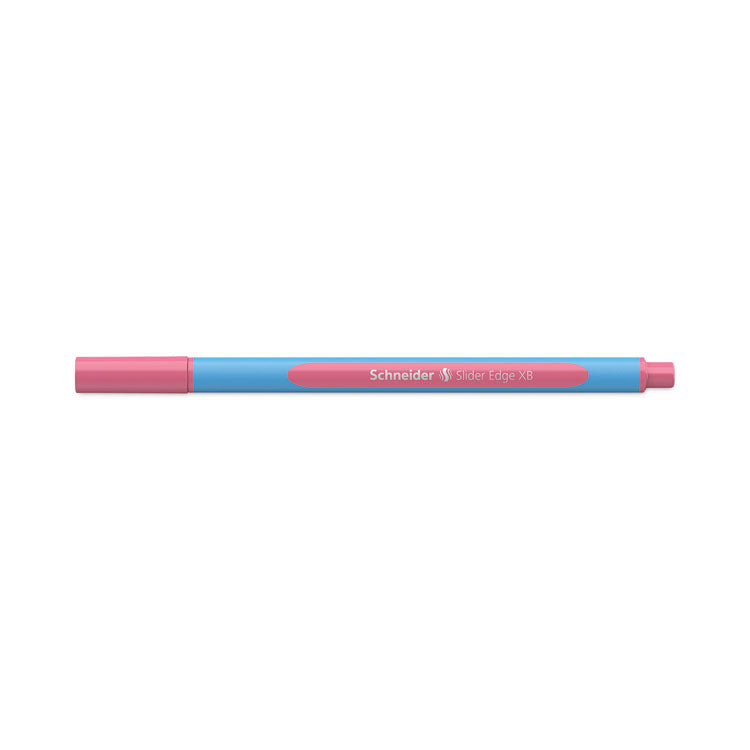 Slider® Edge Pastel XB ballpoint pens with adjustable case/stand feature Viscoglide® ink technology for extraordinary, smooth-glide writing performance and an Extra-Broad (XB) point to lay down extra-bold lines. Ink dries quickly and remains smudge-proof, even on smooth-finished paper, even when later highlighted. Rubberized, three-sided barrels prevent the pens from rolling off surfaces, while at the same time providing a more ergonomic writing experience for hand-fatigue-free, relaxed writing, even during the longest writing and drawing sessions. Wear-resistant stainless steel tip design enhances ink flow and prevents grinding when writing across the page. Handy cap with ink-color indicator fits neatly on either end of the barrel. An included, ultra-durable case converts into a convenient, extra-sturdy pen-set holder—it folds closed to be used as a flat carry case and flips open to be used as a handy, adjustable-angle pen-set stand. Produced CO2 neutrally. Pen Sub-Brand & Product Family: Slider® Edge XB; Pen Type: Ballpoint Pen; Pen Style: Stick; Pen Tip Type: Conical.