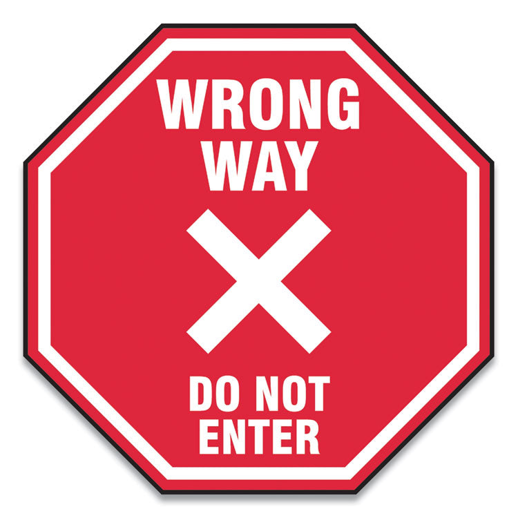 Alert and remind visitors, customers, and employees to practice social and physical distancing to prevent the spread of COVID-19, the Coronavirus. Constructed of thick adhesive vinyl. Subsurface printed and laminated to protect the graphics and message from heavy pedestrian traffic. Non-slip, pebble-textured surface provides added durability. Strong, permanent, acrylic adhesive back with peel-off liner. Adheres firmly to smooth, clean, dry surfaces. Size: 12 x 12; Message(s): Wrong Way Do Not Enter; Material(s): Slip-Gard™ Adhesive Vinyl; Orientation: Vertical.