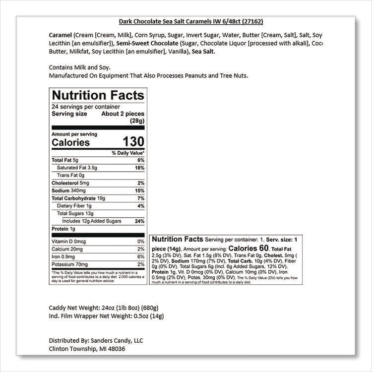 Small Batch Wonders Snack Size Dark Chocolate Sea Salt Caramels, 0.5 oz Individually Wrapped, 48/Box
