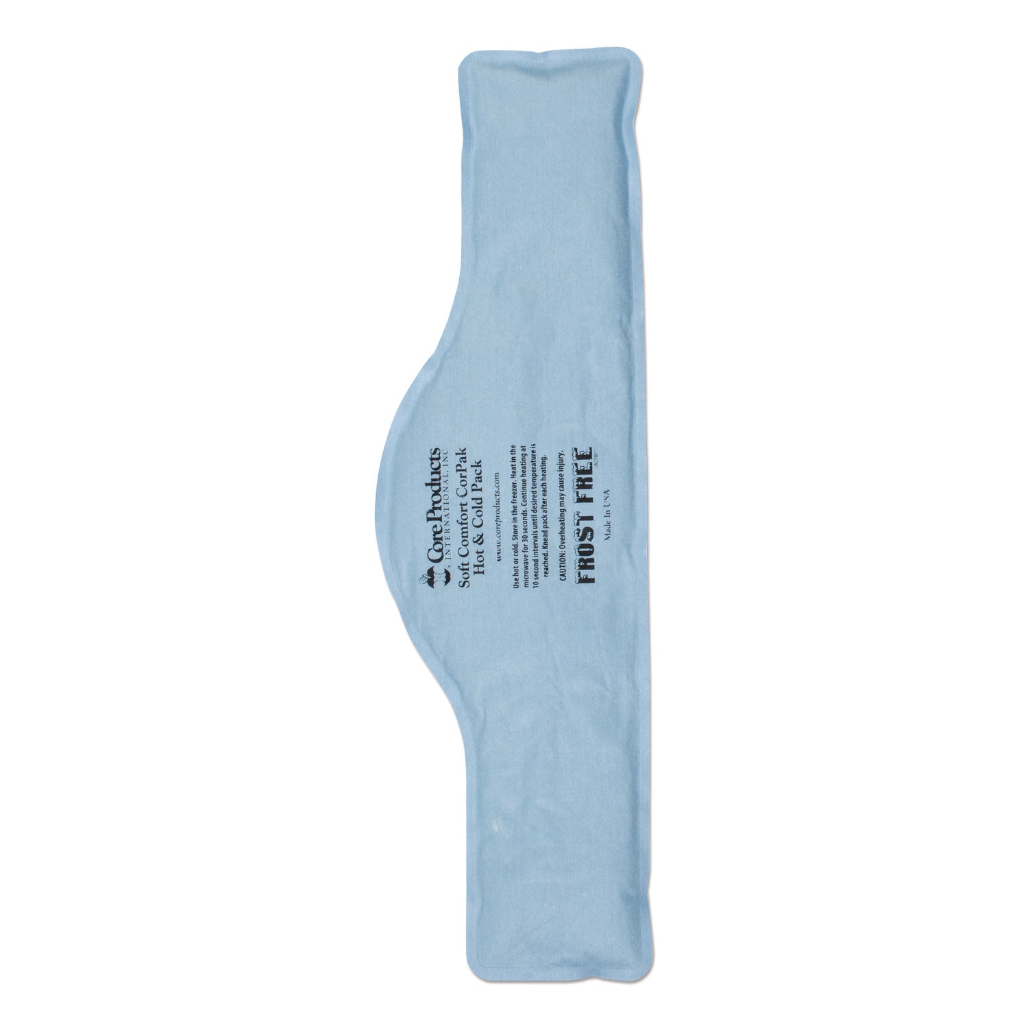Soft Comfort CorPaks™ help to ease pain and reduce inflammation associated with strains and sprains. Accommodating both hot and cold therapy, the non-toxic, completely natural fill allows the pack to remain pliable, comfortably contouring to your pain points. Use cold to reduce inflammation, hot to relax muscles and promote healing. Soft, frost-free design is gentle on skin—no wrap needed. Each pack, when properly prepared, maintains its therapeutic temperature for up to 20 minutes. Keep one ready for use, stored in your freezer, or quickly heat one up in your microwave. Latex-free. Neck Contour. Width: 20"; Depth: 6"; Number of Pieces: 1; Description: Neck Contour Reusable Hot/Cold Pack, 20 x 6.