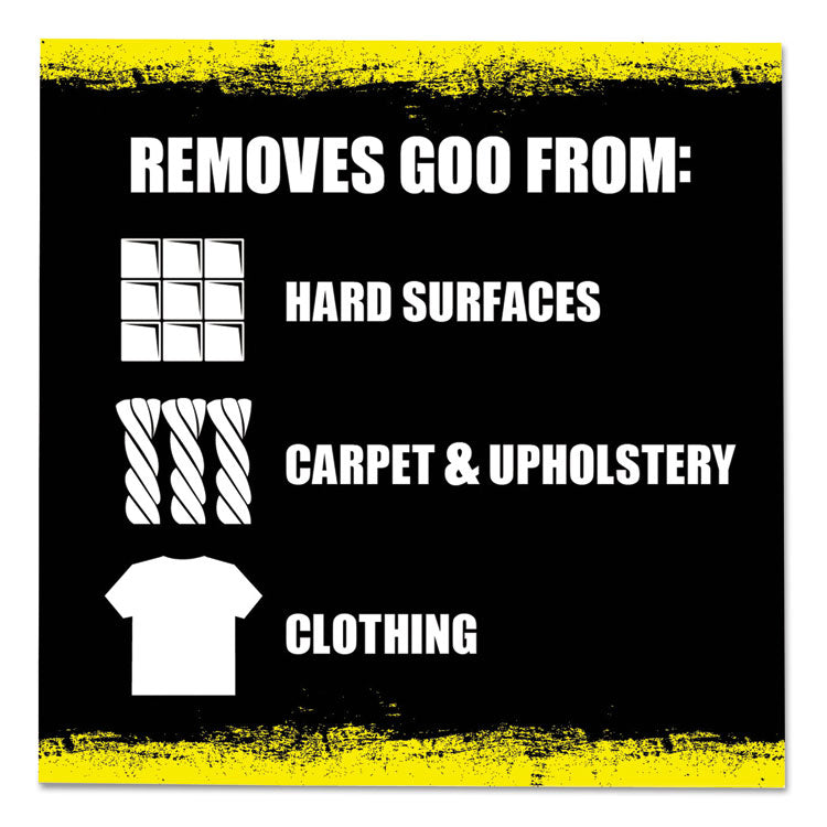 Say goodbye to gummy, greasy, gooey problems. Drip-free gel clings securely to the stain without harming the surface below. Combines scientific technology with the power of citrus to safely remove adhesives, gum, tar, crayon, scuff marks, wax and sap. Excellent for use on hard non-porous surfaces, as well as carpeting, upholstery, clothing and more. Application: Non-porous Hard Surfaces; Walls; Carpet; Upholstery; Clothing; Furniture; Boats; Automobiles; Applicable Material: Glass; Plastic; Metal; Tile; Wood; Ceramic; Fiberglass; Cloth; Carpeting; Chemical Compound: Hydrotreated light distillates; d-Limonene; Tripropyleneglycol methyl ether; Dirt Types: Adhesives; Tar; Gum; Grease; Crayon; Glue; Lipstick; Oil; Permanent Marker; Tree Sap.