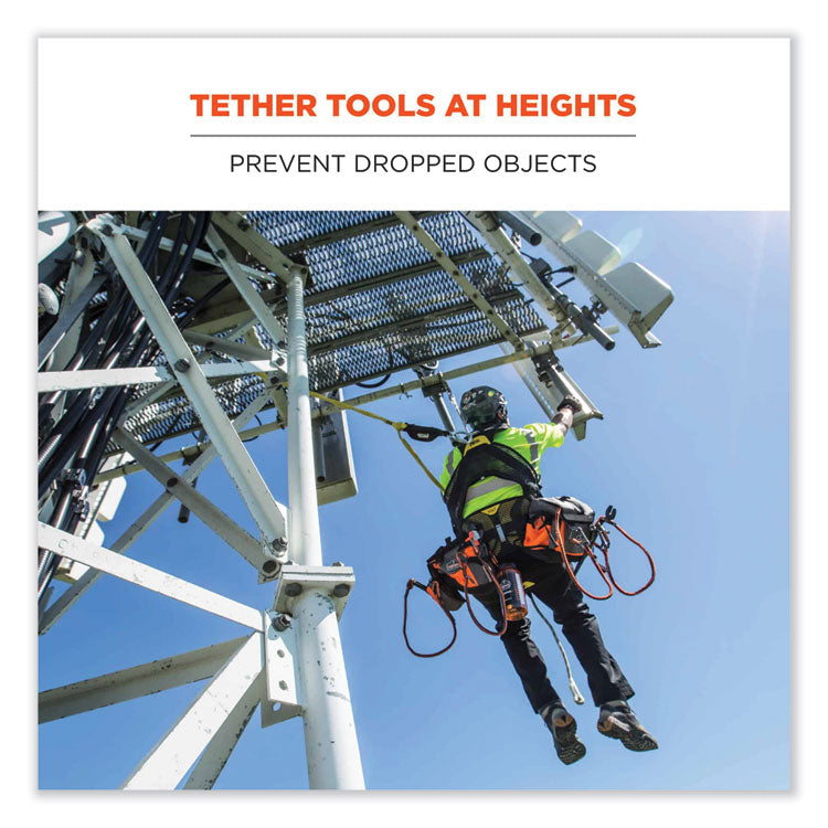 Squids 3100 Lanyard with Carabiner + Cinch-Loop features a single-action, aluminum carabiner with a captive eye on one end and a cinch-loop on the other to tether tools, so that you can help minimize the potential for dangerous tool-drops to improve overall workplace safety. Durably constructed of shock-absorbing tubular nylon webbing with lock-stitching at both ends, the lanyard, itself, delivers reliable, secure performance throughout its listed stretch-range. These tool lanyards are built to withstand defined weight limits and can easily be used by any worker to help avoid accidentally dropping objects that could cause damage or serious injuries. Third-party certified to a 10 lb maximum working capacity with a 2:1 safety factor, these lanyards are ideal for a wide range of industry applications including construction, telecommunications, petro-chemical operations, utility-line maintenance and a variety of other areas where working at heights is the norm. Standard Length—Stretches from 35" to 45" long. Fastener Style: Carabiner; Cinch-Loop; Lanyard Color(s): Lime; Length: 35" to 45"; Safety Breakaway Connector: No.