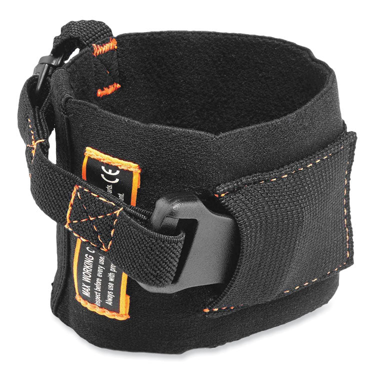 Squids 3116 Pull-On Wrist Lanyard with Buckle features a patented design that's easy to pull on and off. One-size-fits-all format and elastic-material construction ensures a snug, secure fit for all users. Modular quick-connect buckle allows the wearer to easily attach any compatible tool-tail equipped item. Designed specifically for use with Squids 3103 Detachable Tool Tail Cinch-Loops (sold separately). Third-party tested to a maximum safe-working capacity of 3 lb with a 2:1 safety factor. Fastener Style: Buckle; Lanyard Color(s): Black; Length: 7.5"; Safety Breakaway Connector: No.
