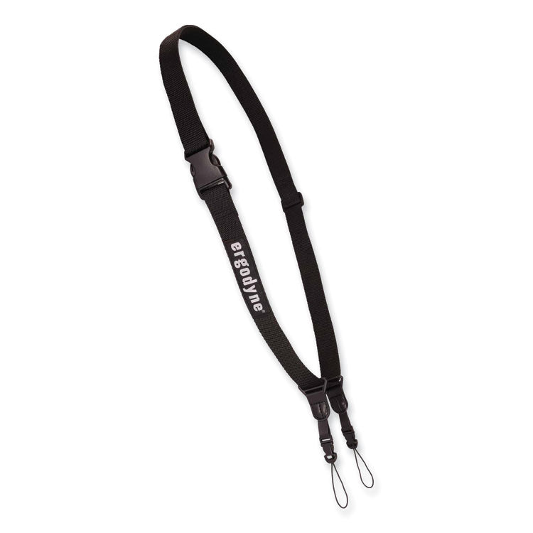 The Squids 3134 Barcode Scanner Lanyard Sling keeps barcode scanners secure and accessible during warehouse and distribution work. This industrial-grade scanner sling is made entirely of heavy-duty materials to ensure reliable, durable performance, even in the harshest work environments. Adjustable-length, body-hugging webbing with curved buckle sits comfortably against the body for all-day wearing comfort, while ensuring one-size-fits-most convenience. Two included small loop attachments easily connect and disconnect to the small captive holes built into most cordless scanners. Modular design allows you to easily switch out scanners for any equipped with a Squids 3133 Barcode Scanner Loop Attachment (additional loop attachments sold separately). Do your part to prevent your expensive scanners from being dropped and damaged, while you protect anyone or anything that might find itself in a dropped scanners path. Hand wash with mild soap and water and then air dry. Fastener Style: Loop; Lanyard Color(s): Black; Length: 28" to 66"; Safety Breakaway Connector: No.