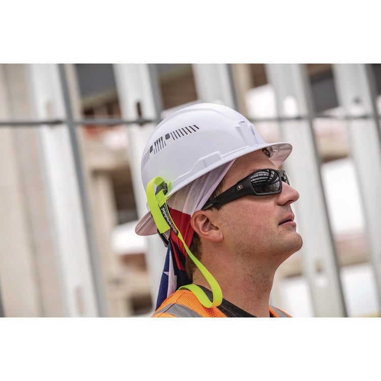 When working at heights, use the Squids 3150 Elastic Lanyard with Buckle to securely tether hard hats, hand tools, tape measures and more to minimize inconvenient hassles while preventing dropped objects from becoming dangerous projectiles. A durable double-lock buckle makes anchoring to captive connection points on fall protection harnesses, safety vests, tool belts and more a snap, while the lanyard's tethering end accommodates all hard hats, whether connecting to the hat's accessory slot or suspension system. The versatile tethering end also accommodates a wide variety of hand tools, measuring devices and other smaller objects. High-stretch elastic webbing reduces the potential for jarring the worker off balance in the event of a drop. Ideal for a wide range of industry applications from construction to suspended-line maintenance to tower maintenance, this lanyard is third-party certified to a maximum working capacity of 2 lb with a 2:1 safety factor. Fastener Style: Buckle; Lanyard Color(s): Lime; Length: 18" to 48"; Safety Breakaway Connector: No.