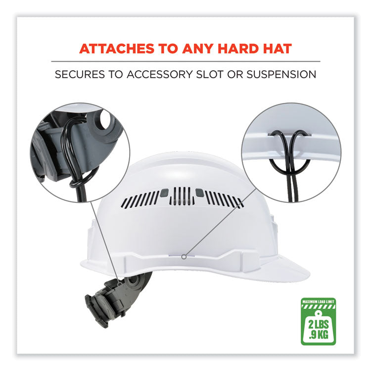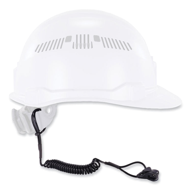 The Squids 3158 Coiled Lanyard with Clamp securely tethers either hard hats or hand tools to prevent both inconvenient hassles and to prevent smaller items from becoming dangerous dropped objects when working at heights. A durable quick-connect clamp makes for easy anchoring shirts or collars, while the low-profile coil design stays out of the workers way to minimize the potential for snag, tangle and tripping hazards. Compatible with all hard hats, this safety lanyard can be easily connected via the accessory slot or suspension system, and it can also be used for tethering hand tools and other smaller objects through a tool's captive hole eyelet or at retrofitted tool-attachment points. Tested to be trusted and built to withstand harsh conditions, this lanyard is third-party certified to a maximum working capacity of 2 lb with a 2:1 safety factor. Fastener Style: Clamp; Lanyard Color(s): Black; Length: 12" to 48"; Safety Breakaway Connector: No.