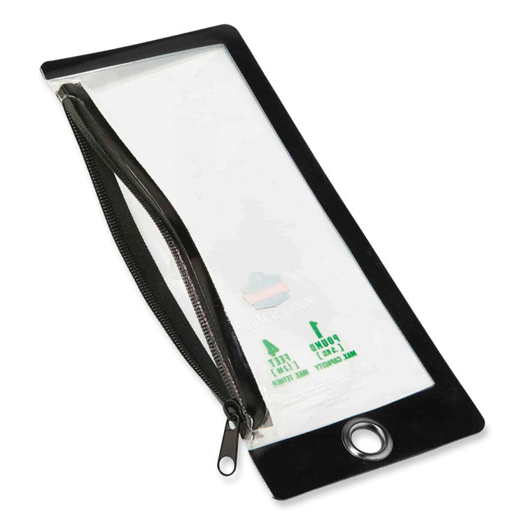 The Squids 3195 Cell Phone Tool Tethering Kit includes both a Squids 3156 Coil-Cable Tool Lanyard and a Squids 3760 Water-Resistant Phone Pouch Trap, making it ideal for keeping your smart phone safe and secure, while minimizing the potential for inconvenient and potentially very dangerous object drops when you're working at heights. Built and tested to endure the toughest workplace conditions, the included coiled-cable, polyurethane tool lanyard features a low-profile, lightweight design that minimizes snag and tangle hazards, while its screw-gate aluminum carabiner on one end and fixed-loop tether on the other simplifies both tool-attachments and anchoring, even when the user is wearing heavy work gloves. The included phone pouch features a clear, touchscreen-compatible face, reinforced tarpaulin sides, a zipper-closure and a steel grommet attachment ring. Kit is third-party certified to a maximum tethering capacity of 1 lb. Fastener Style: Carabiner; Loop; Lanyard Color(s): Black/Orange; Length: 12" to 48"; Safety Breakaway Connector: No.