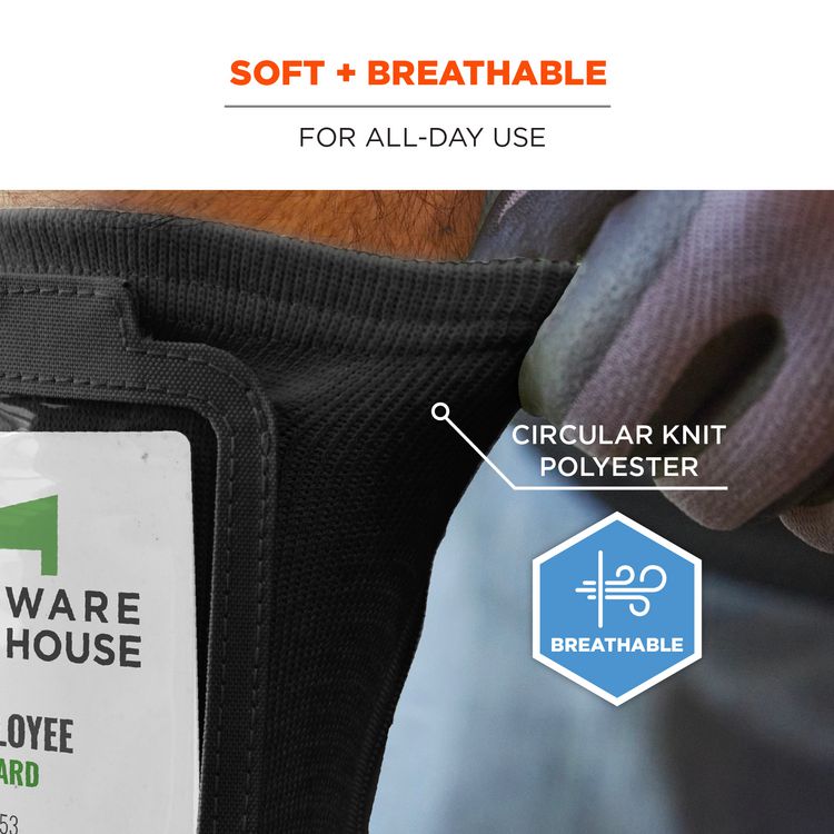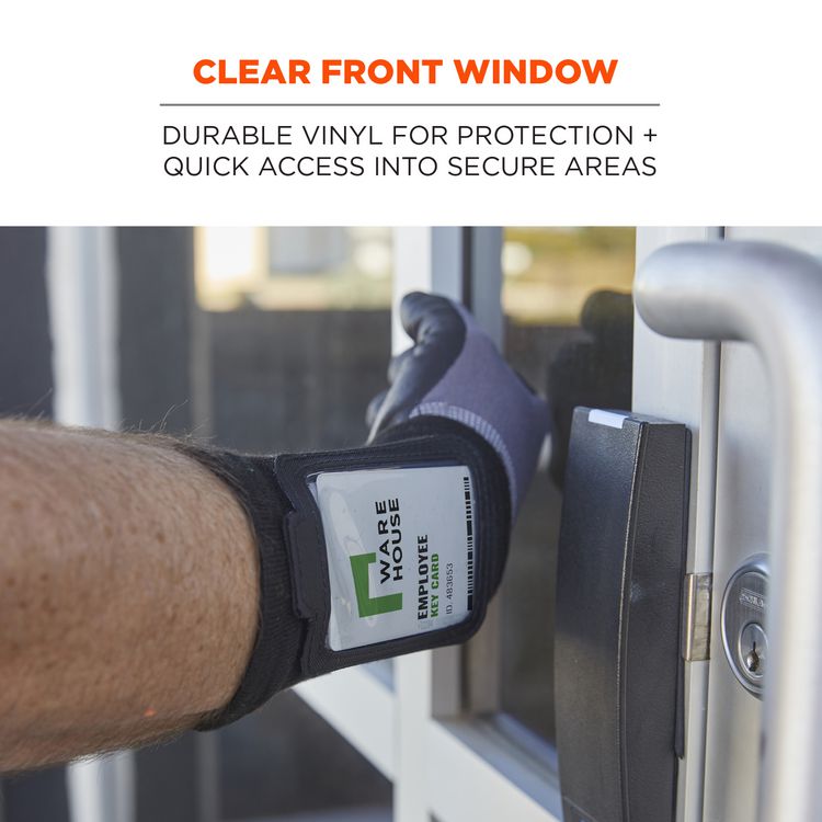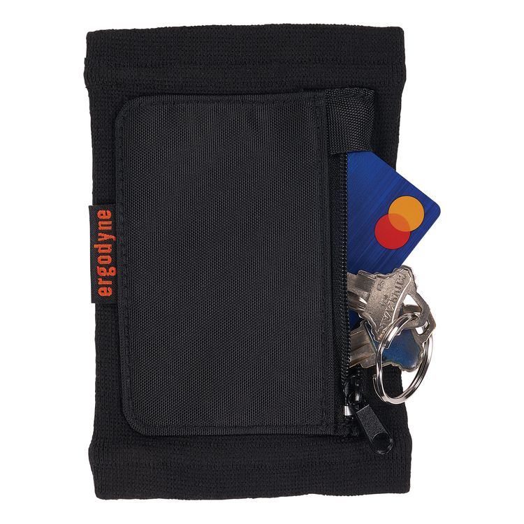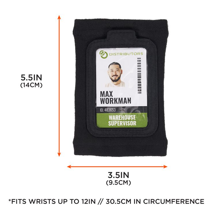 Squids 3388 Wrist ID/Badge Holder is designed for easy access and prevention of lost IDs and badges. A soft and breathable circular knit polyester material stretches to fit a range of wrist sizes, while a small pocket with zipper closure keeps small items secure. The clear window is made with durable vinyl for protection and long-lasting use. This arm band holder fits most ID badges or access cards measuring 3.75" x 2.75". Orientation: Vertical; Name Badge Holder Length: 5.5"; Name Badge Holder Width: 3.5"; Name Badge Holder Color(s): Black.