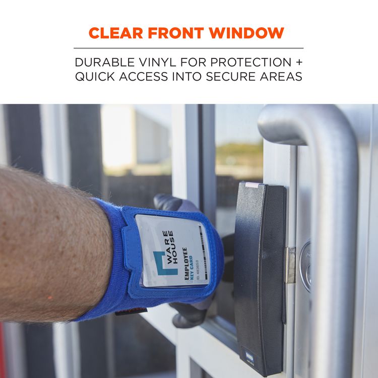 Squids 3388 Wrist ID/Badge Holder is designed for easy access and prevention of lost IDs and badges. A soft and breathable circular knit polyester material stretches to fit a range of wrist sizes, while a small pocket with zipper closure keeps small items secure. The clear window is made with durable vinyl for protection and long-lasting use. This arm band holder fits most ID badges or access cards measuring 3.75" x 2.75". Orientation: Vertical; Name Badge Holder Length: 5.5"; Name Badge Holder Width: 3.5"; Name Badge Holder Color(s): Blue.