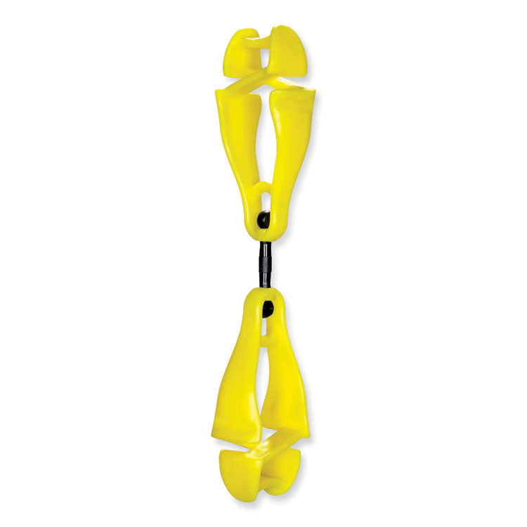 The Squids® 3420 Dual Clip Swivel Glove Clip Holder securely grabs onto your face masks, gloves, ice traction, cooling towels, keys and whatever else always seems to mysteriously disappear, so you can keep what you need at the ready. No more trying to stuff gloves in your pockets only to have one fall out and get lost. This glove holder features a patent-pending design with a swiveling link that allows it to rotate freely without getting bound up. The strong gripping jaws can hold on to gloves, hats, keys, towels and other PPE that are too bulky to fit in pockets. Ideal for those who work in construction, warehouses, manufacturing, food processing plants, janitorial and even retail environments. Keeps gloves and other gear handy for off-the-clock use, too, like hunting, hiking, home projects and more. The link design allows one end of the gear grabber to safely separate in case of emergency. HTO Type: Glove Grabber; Material(s): Acetal Copolymer; Thermoplastic Polyurethane; Color(s): Lime; Width: 1".